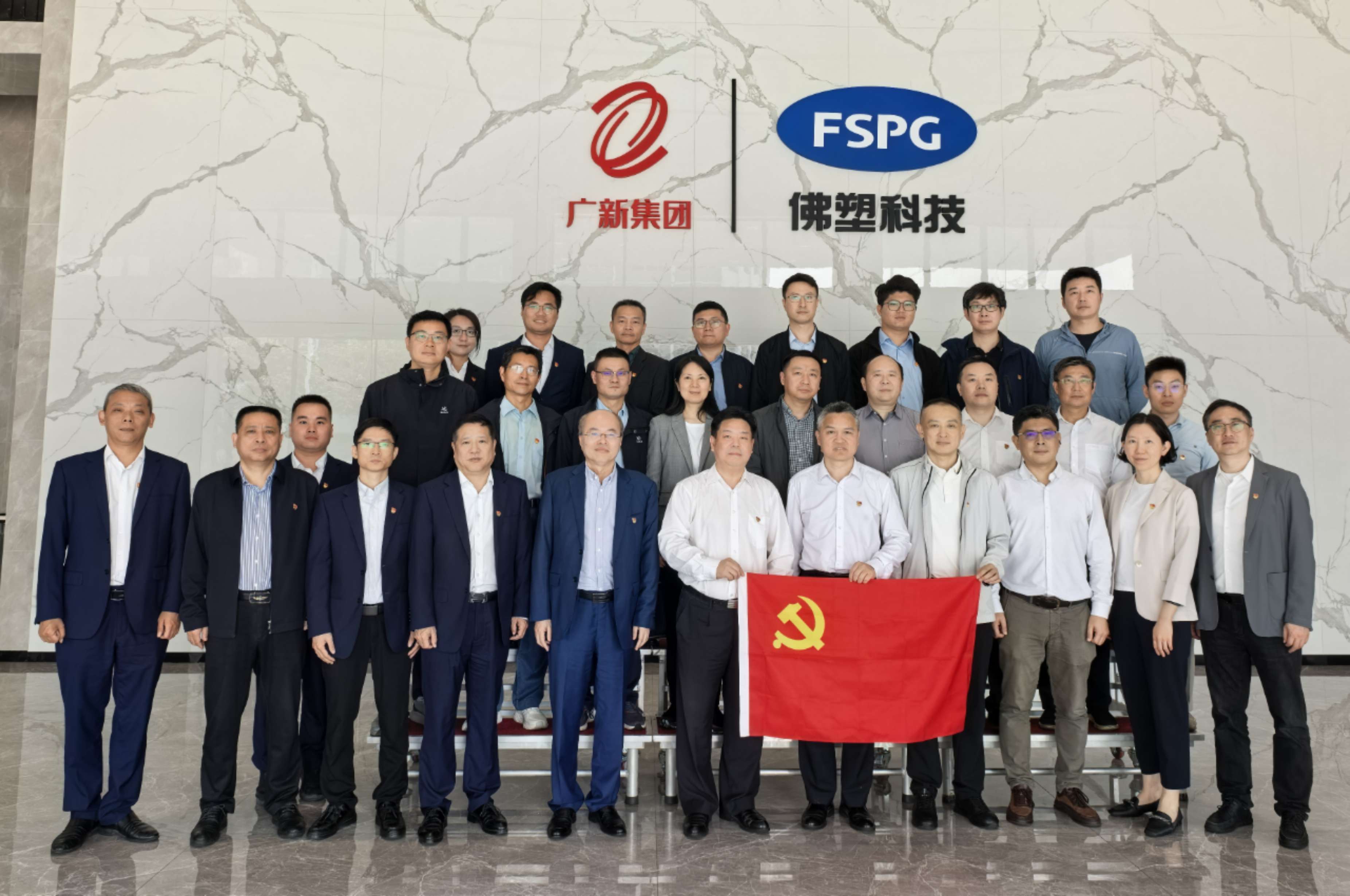 省工信廳材料工業處、工業節能與綜合利用處,廣新集團安全環保監管部、CQC廣州分中心、佛塑科技五個基層黨組織共30多名黨員骨干參加本次活動。
