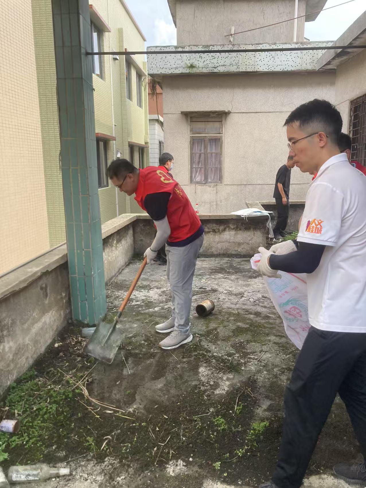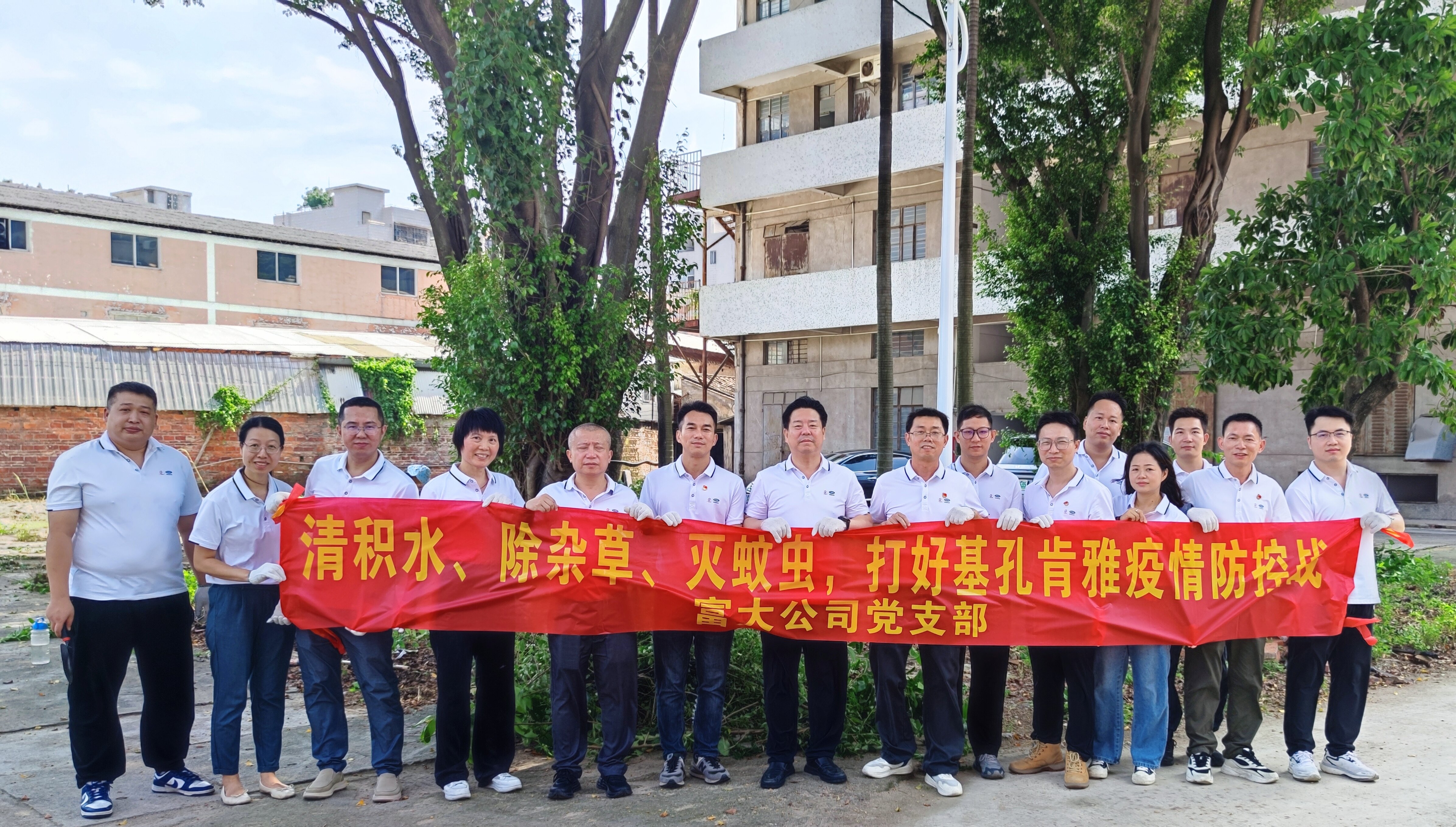 7 月正值基孔肯雅熱等蚊媒傳染病高發期,蚊蟲滋生環境復雜,防控形勢嚴峻。公司黨委書記、董事長唐強率先垂范,針對園區綠化帶、空草地,組織富大公司黨支部開展“清積水、除雜草、滅蚊蟲,打好基孔肯雅疫情防控戰”主題黨日活動,帶領黨員職工清理600余平方米區域,清除雜草及垃圾5噸,有效減少蚊蟲棲息場所,并對整個園區、風林路及馬鞍街等物業部署防控工作,為后續防控工作奠定堅實基礎。