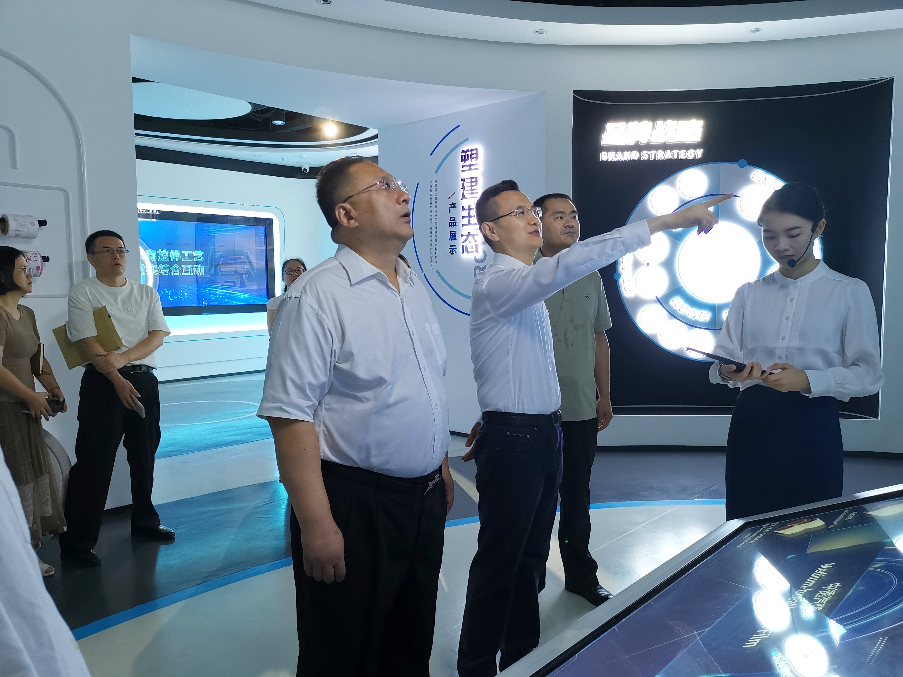 調研組一行首先參觀佛塑科技數字化展廳,馬平三向調研組詳細介紹公司發展歷程、產品應用場景和企業文化等。