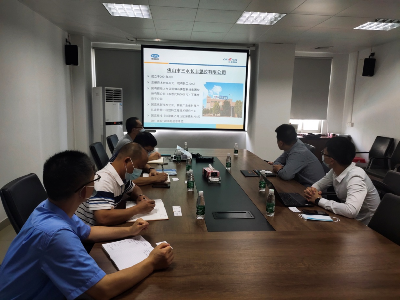 會上,田豐介紹了光馭科技目前攻關領域和技術研發情況。長豐塑膠介紹了長豐塑膠現狀、PVC薄膜行業的發展前景和期望的合作方向。雙方就新材料在產品上的應用可行性展開了深入的交流與探討。